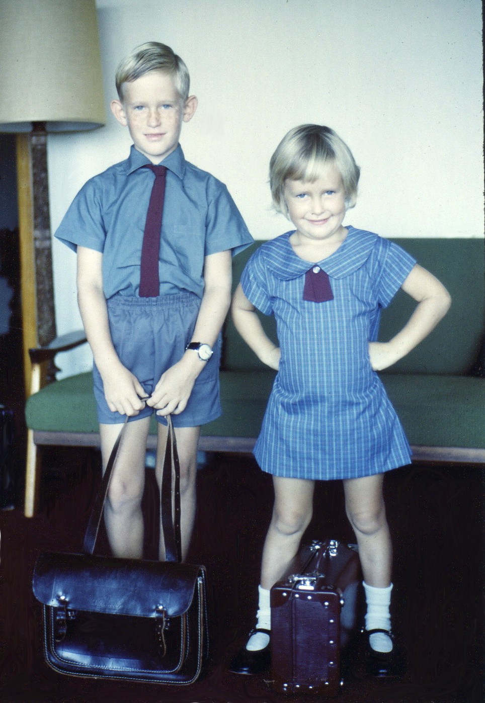 My sister and me dressed for school in Sydney, Australia, around 1970